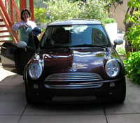 My Mini Cooper in Oakland, CA halfway through a REALLY long Spring Break trip. My friend Janet is next to it! |